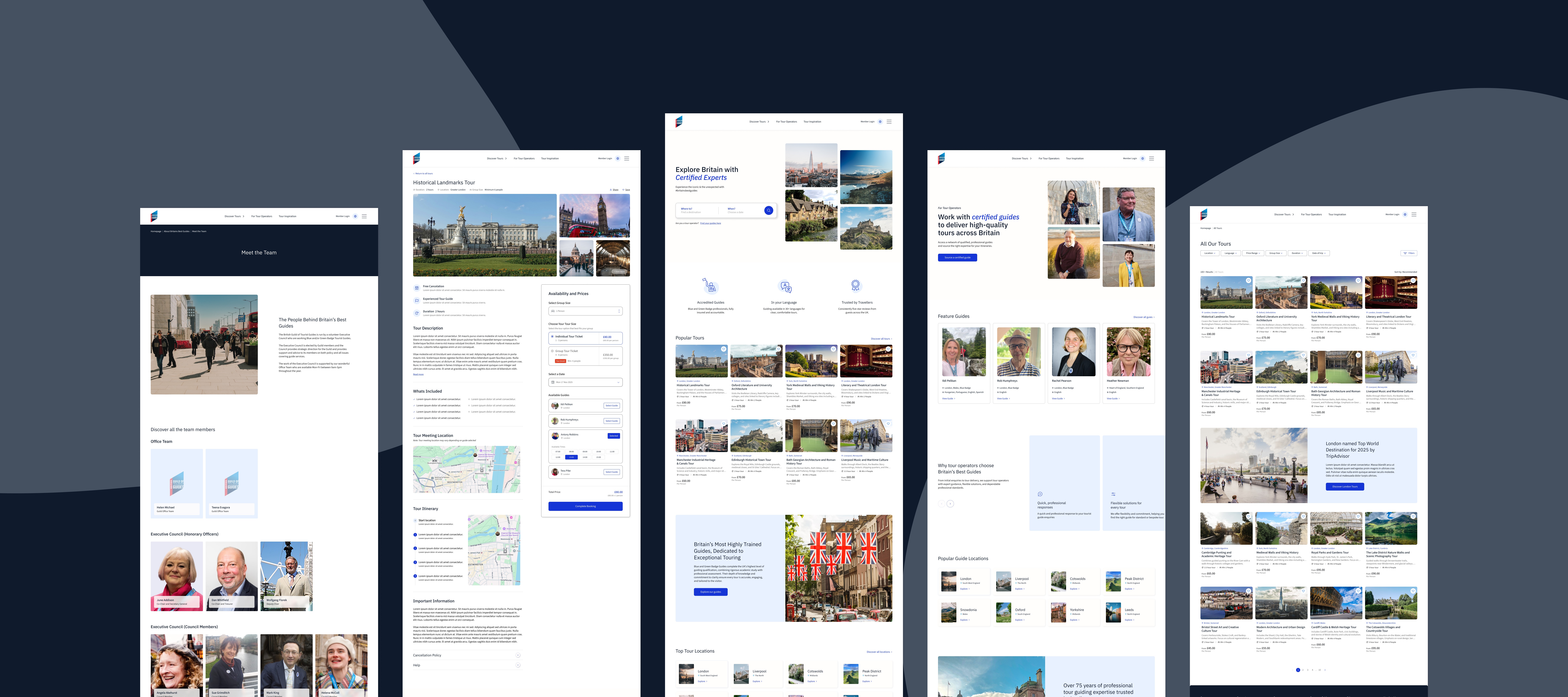 Britain's Best Guides is a UK tour operator offering bespoke guided tours across the country through a network of highly reputable guides. Revo was approached to completely redesign and restructure their existing website with the goal of increasing traffic and driving more bookings. I led the project end to end as the main designer — handling everything from initial research through to final designs — working closely with the project manager and attending all client calls throughout.